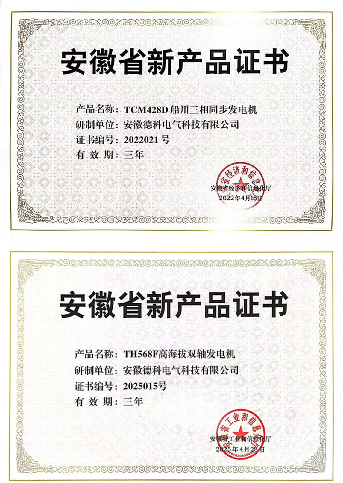 2025年5月,CQ9传奇电子电气自主研发的TCU468G陆用六极自励磁发电机与TH568F高海拔双轴发电机,凭借领先技术优势,双双通过权威评审,成功入选《2025年第一批安徽省新产品认定名单》。